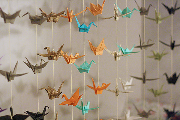 Large cranes are made of one sheet, small cranes are made or one quarter of