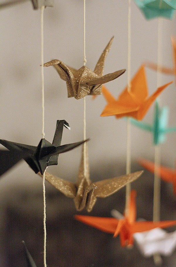 What on Earth! There hasn’t been any Christmas decoration tutorials in my Christmas Calendar yet. This kind of mistake must be corrected, immediately! I had some origami papers i bought from London years ago. I put them to good use and made some origami cranes for our choir christmas market stall. They turned out quite pretty when I used different shades for one ornament so that colour changes from dark to light. Origamis are at their best when you got loads of them. You can hang cranes in white to replace snow flakes in the window or in glittering gold in the tree. Or if you make large colourful ones you can make garland-type decoration and hang it on the roof or your tree.