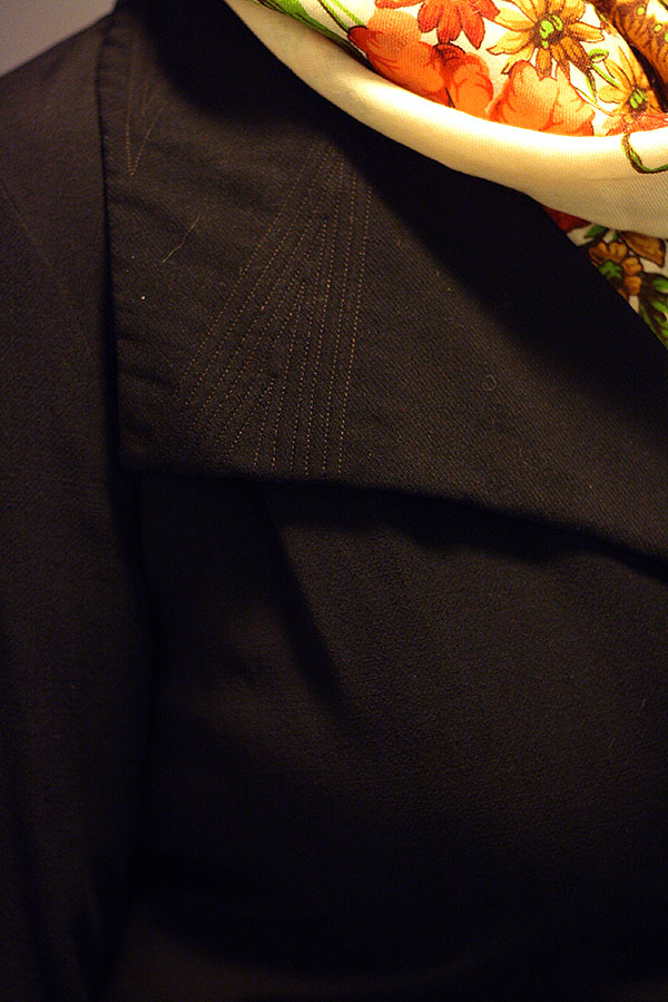 Välikausivaatteet ovat aina olleet kompastuskiveni. En vaan jotenkin osaa. Kaapistani löytyy esim. tosi vähän mitään välikausikeleihin sopivia takkeja. Siksi olinkin aika täpinöissäni kun kesällä löysin tyylikkään vintagetakin syyskeleille. Arvelen mallin ja valmistustekniikoiden perusteella että takki on 30-lukuinen. Sisältä löytyvien lappujen perusteella se on ollut myös teatterikäytössä. Mahdollisesti silloin takkiin on lisätty omituiset ylipitkät neulerannekkeet, jotka ovat kaiken lisäksi eri paria. Takissa oli myös hiukan ratkenneita saumoja jotka piti korjata. Vintage-vaatteissa on usein auenneita saumoja siksi että ennen kaikki ompelulangat olivat puuvillaa joka haurastuu ajanoloon ja alkaa pettää. Samasta syystä täysin ehjä vaate voi ensimmäisessä pesussa tai käytössä ratketa saumoistaan.