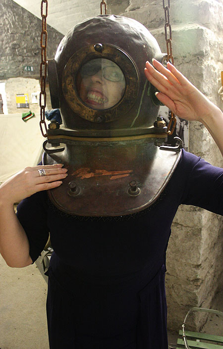 Scary diving suit. You go in to the suit from the “bagmouth” in