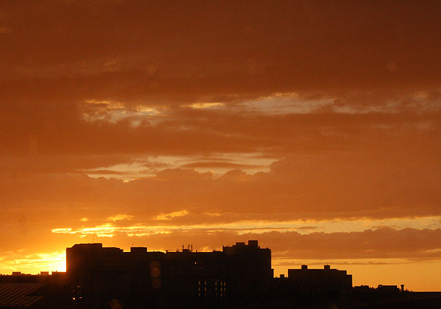 Hehkuvainen – Kyllä, tuo kellervän oranssi valo oli aika hurja. Monesti juuri ennen ukkosta valo menee sellaiseksi jännän keltaiseksi, mutta en kyllä muista että oliko tässä kyse sellaisesta vai vaan tavallista värikylläisemmästä auringonlaskusta. Kun asuu talon ylimmässä kerroksessa mäen päällä niin näkymät näihin luonnonilmiöihin ovat erinomaiset. Mulla on myös nätti kuva valaisevista yöpilvistä, taidanpa laittaa senkin kalenteriin (jos löydän) kun tässä näitä päiviä vielä on puolet jäljellä :D
