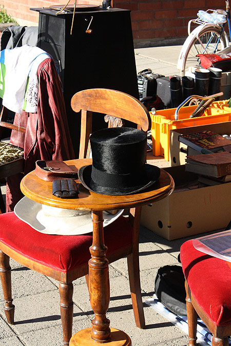 Riikka – Kiitos :) Löysin rintakorun, sormustimen ja pöytäliinan sekä yhden tarjottimen. En katsellut vaatteita ihan hirveän tarkkaan mutta minusta suurin osa näytti kyllä aika moderneille (80-90-lukua). Yhden korsetin bongasin (en ostanut kuitenkaan) ja muutamia vanhoja kenkiä, mutta kyllä ne kaikki taisi olla 50-lukua tai siitä tuoreempaa tavaraa. Myyjiä oli niin paljon että taisteluväsymys iski jossain kohtaa eikä jaksettu edes kiertää ihan kaikkia pöytiä. Yhtä upeaa samettista (40-luvun?) iltalaukkua ihailin erään naisen kädessä mutta hinta oli sen verran tyyris että en jäänyt tarkkailemaan ostiko nainen sen vai ei. Itsekin olisin ollut samaisesta laukusta kiinnostunut… Ja eniten ehkä jäi harmittamaan ettei meillä ollut tällä kertaa varaa ostaa gramofonia. Olisi ollut useitakin tarjolla… No, ensi kuussa uusi yritys :D