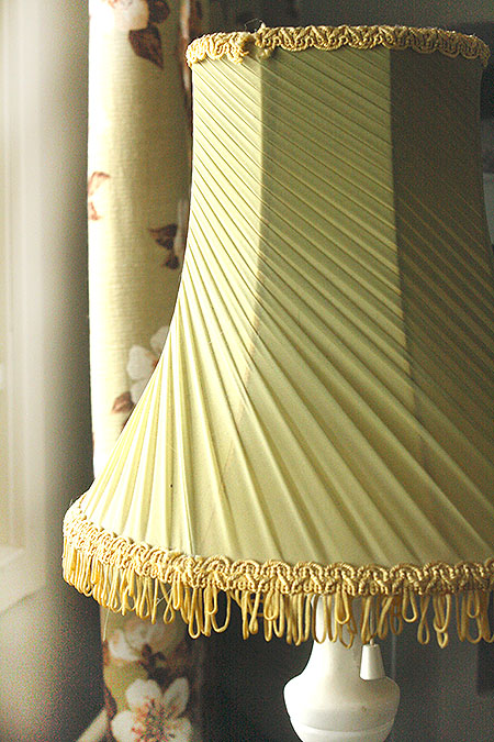 In Spring when Nature starts turning green everywhere, I also get the craving for spring green. Last year I got my annual dosage of green from light green blouse, previous year I got excited about green smoothies and light green bedlinen. This year I was able to find light green floral curtains for our bedroom. They match perfectly together with the table lamp I thrifted several years ago.