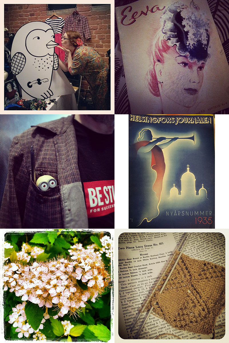 Toukokuun on ollut kiireisin kuukausi vähään aikaan. Ja jos ennusmerkit pitävät paikkansa niin matalalento jatkuu läpi kesän. Puuhaa on piisannut autonostosta korjausompeluun ja neulemallien etsintään. Tavaraa on myyty sekä design-tapahtumassa että puistokirppiksellä. Kirppistelemään on ehditty itsekin ja potemaan jälleen kerran omantunnontuskia siivoamattomasta parvekkeesta. Taidan olla parantumaton sottapytty.