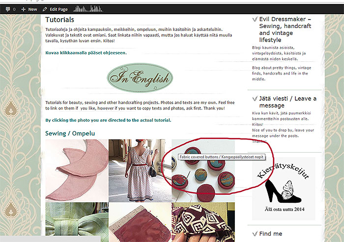 Ihanaa kun olet taas päässyt laittamaan näitä juttuja! Nämä muutokset on tosi hyvät. Pääsee heti näkemään mistä jutussa on kyse. Tutoriaaleista katsoin tuon pitsiupotukset ja vielä jäi kiinnostavia juttuja katsottavaksi. Samoin vintagepuolella.