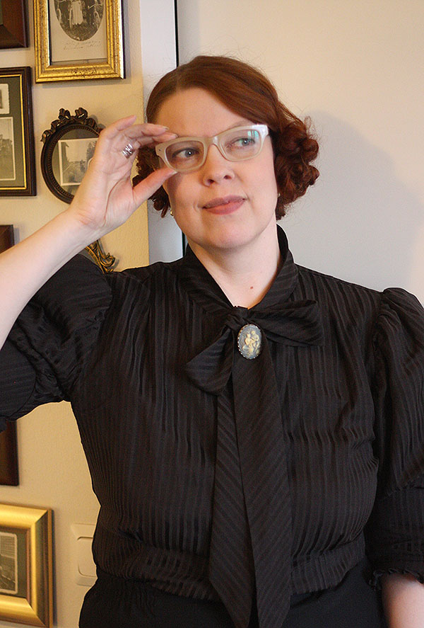 I like pleats for some reason. And puffy sleeves too. Allthough large puffy sleeves require puffy sleeves to the coat too. That is probably the reason why I haven’t used this blouse. I don’t have coat with puffy sleeves, but my spring coat is rather loose on the shoulders so this fits under. Obviously they don’t show on the photo, but inside sleeves there are pleated tulle support on the shoulder. They keep sleeves puffy.